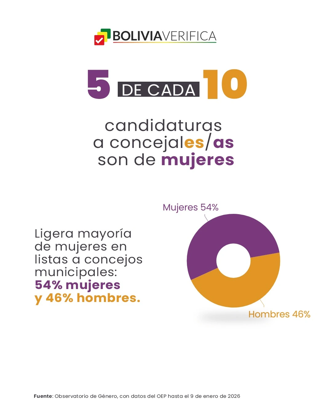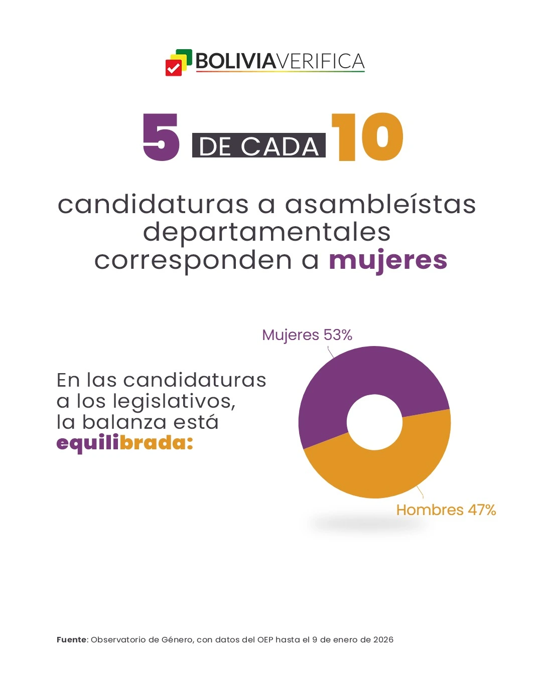 Estos datos provienen del boletín informativo del Observatorio de Género de la Coordinadora de la Mujer, que analiza el cumplimiento de la paridad y alternancia en las candidaturas presentadas por las organizaciones políticas rumbo a los comicios del 22 de marzo de 2026. El análisis busca aportar al debate público y fortalecer la vigilancia ciudadana sobre la participación política de las mujeres, así como «visibilizar la persistente brecha entre la paridad formal y la paridad sustantiva,