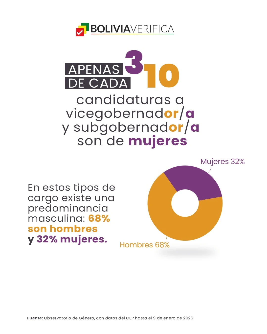 Apenas 3 de cada 10 candidaturas a vicegobernador y subgobernador son mujeres