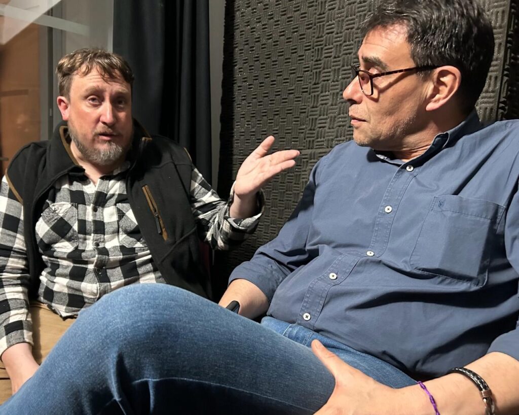 Los dirigentes de la Asociación de la Prensa Uruguaya, Fabián Cardozo, a la izquierda, y Luis Curbelo, entrevistados el 17 de septiembre de 2025, fueron elegidos para ocupar los cargos de presidente y secretario de prensa del sindicato, respectivamente, en 2018. (Foto: Sally Stapleton)