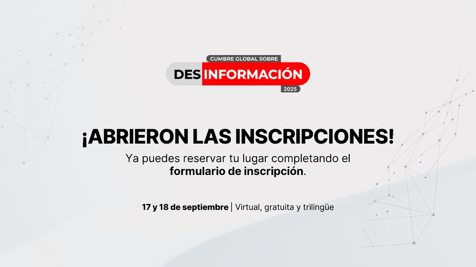 La Cumbre Global sobre Desinformación 2025 abre oficialmente sus inscripciones para participar de su quinta edición que se va a desarrollar los días 17 y 18 de septiembre de forma online y gratuita.