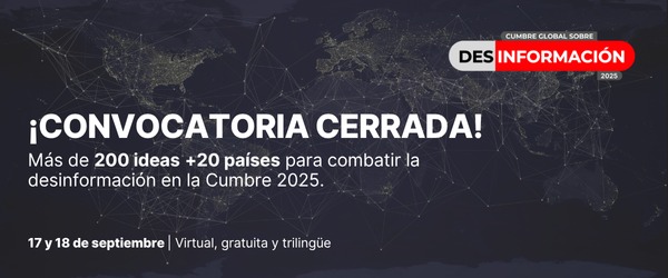 La edición 2025 de la Cumbre Global sobre Desinformación se celebrará los días 17 y 18 de septiembre en formato 100% virtual, gratuito y trilingüe (español, inglés y portugués). Este 31 de julio se cerró la convocatoria de propuestas con una excelente respuesta: 203 propuestas fueron presentadas por periodistas, investigadores, tecnólogos, educadores y activistas de distintas regiones del mundo.
