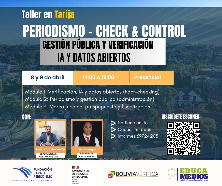 Home»Capacitaciones»Periodismo: Gestión pública, verificación IA y datos abiertos – Tarija