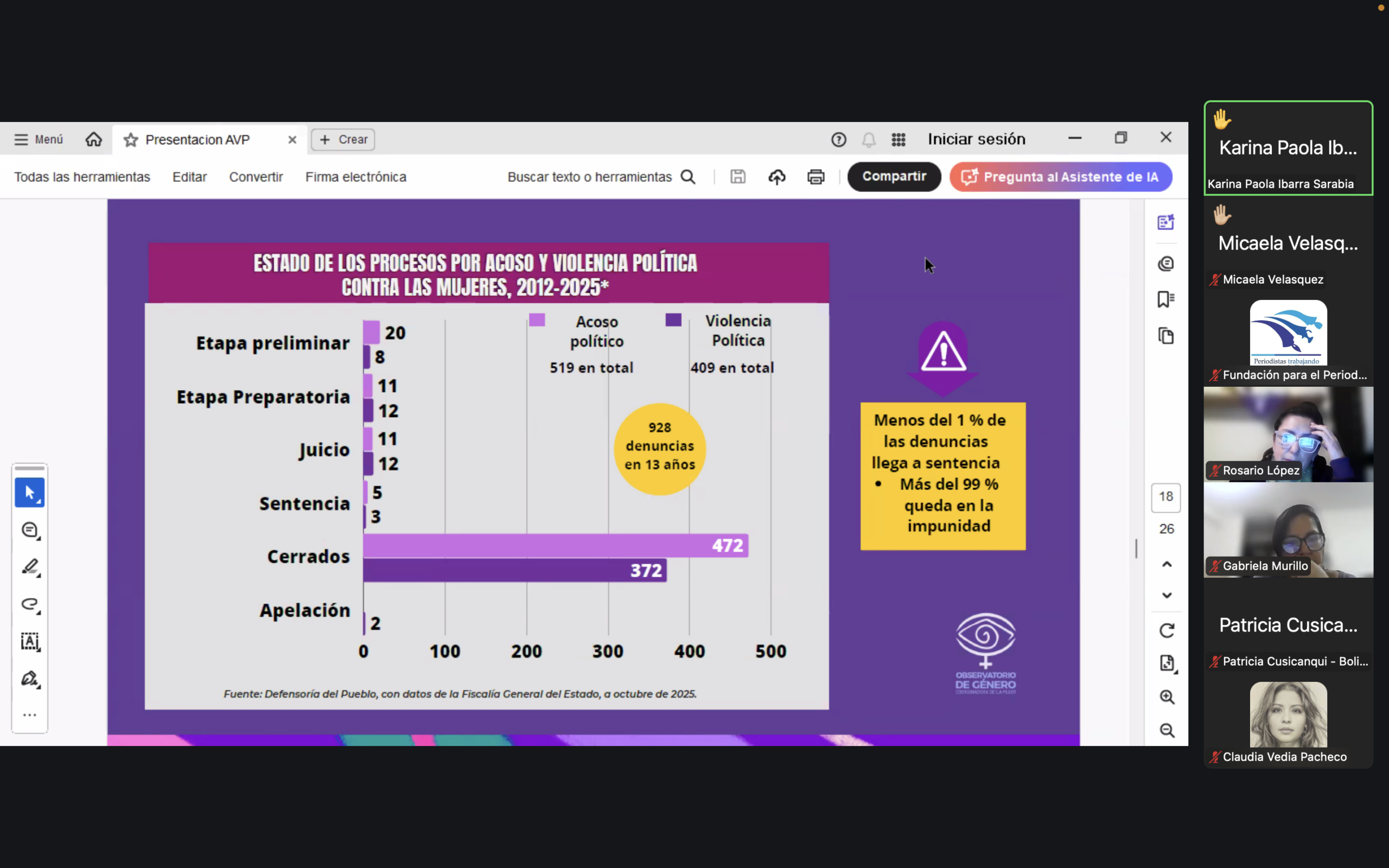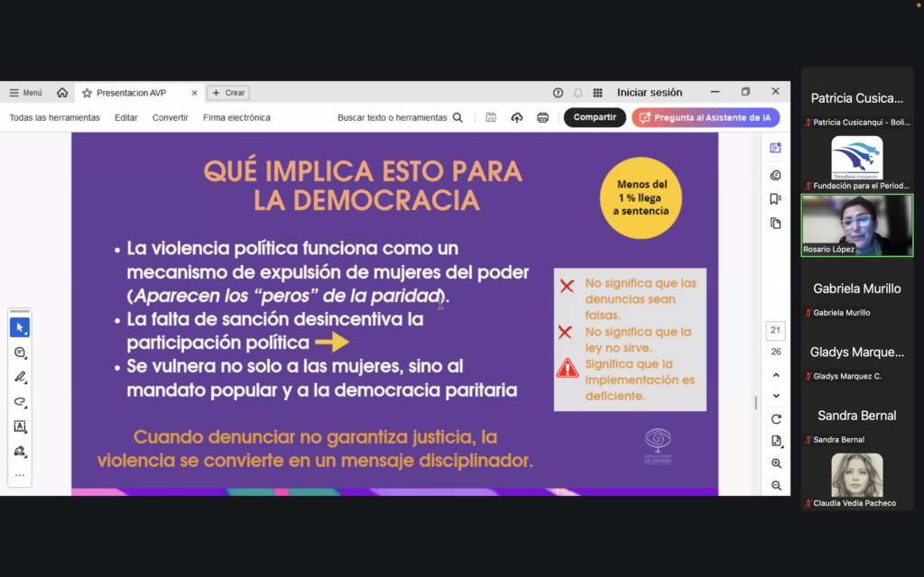 - Poder en la Voz: Se identificó la urgencia de dar voz a las candidatas y visibilizar su labor profesional para romper con la normalización de la violencia política en el imaginario social.