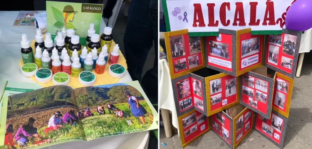 Algunos de los productos que elaboran las mujeres del municipio de Alcalá, durante la feria del 25 de noviembre en La Paz. Foto: Bolivia Verifica